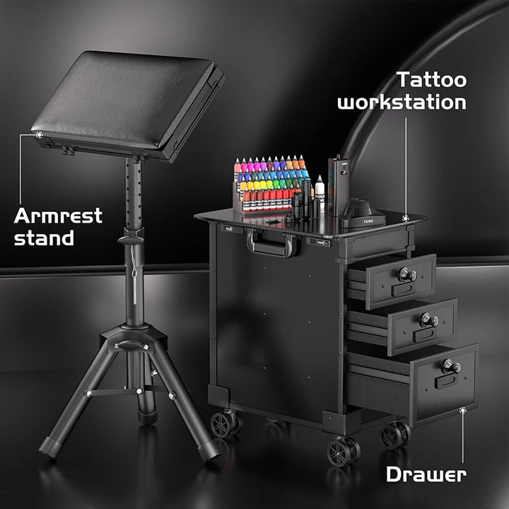 1.Great Multi-functional Tattoo Tool: It is both a tattoo work station, a tattoo armrest stand, and a travel trolley case, making it your best partner for home tattoos. It is a must-have item for professional tattoo salons or individual tattoo artists