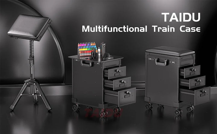 TAIDU Tattoo Suitcase With Three Drawers Luggage Case Composite PU ABS Traveling Case Large Storage Space Tattoo Equipment
