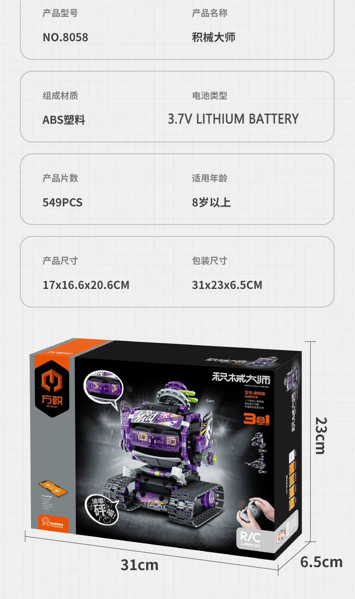 Technical Intelligent 3-in-1 Robot APP Remote Control Bricks Building Blocks Programming Toys For Kids Boys Gift Educational Set