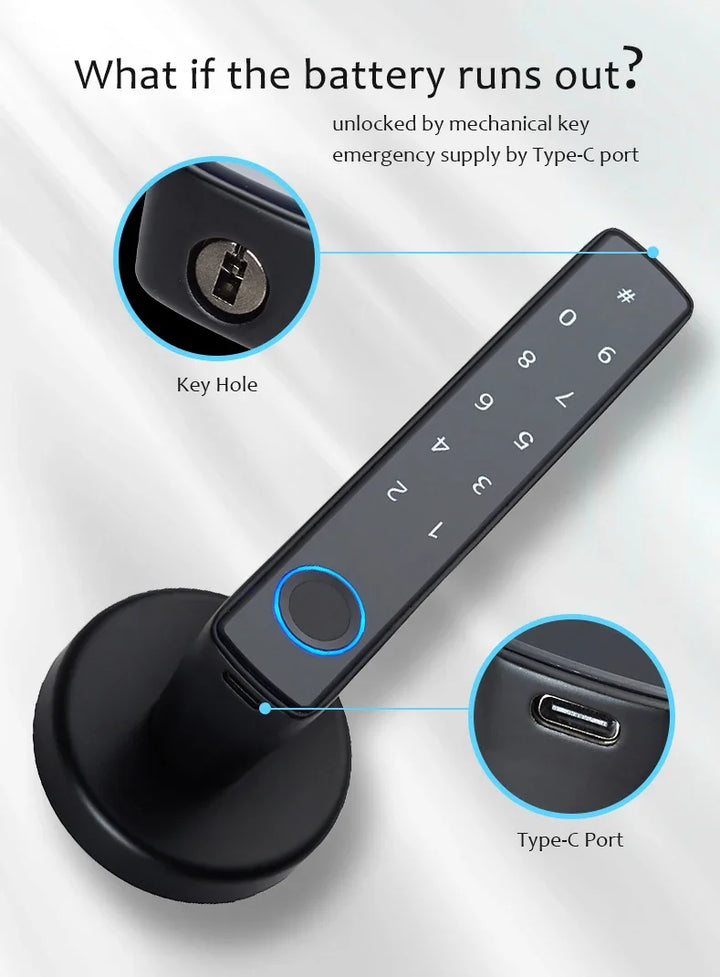 【4WAYS TO UNLOCK】: Advanced4-in-1 Keyless Biometric door lock: Tuya App + Fingerprint + Anti-peep virtual password + Physical Key, fingerprint recognition rate up to 98% and open the door just need 1 second. You can add 50 groups fingerprintsand 100 groups passwords, Eliminate the trouble of forgetting to bring the key when you go out.