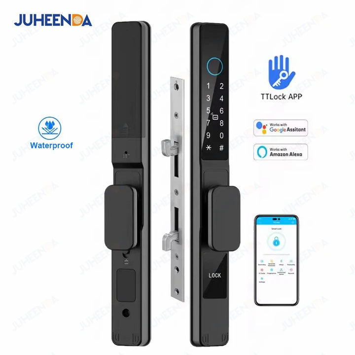Waterproof Sliding Door Smart Lock TTLock App Alexa Fingerprint Digital Code RFID Card Anti-Lock Aluminum Glass Electronic Lock