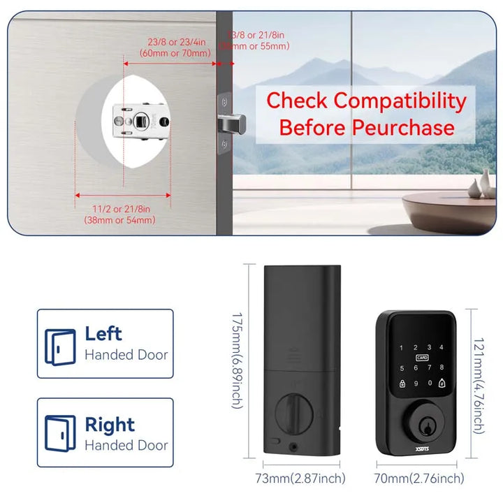 XSDTS Entry Smart Door Lock IC Card Key/Password/ Tuya Smartlife APP Unlock Front Door Smart Lock Deadbolt